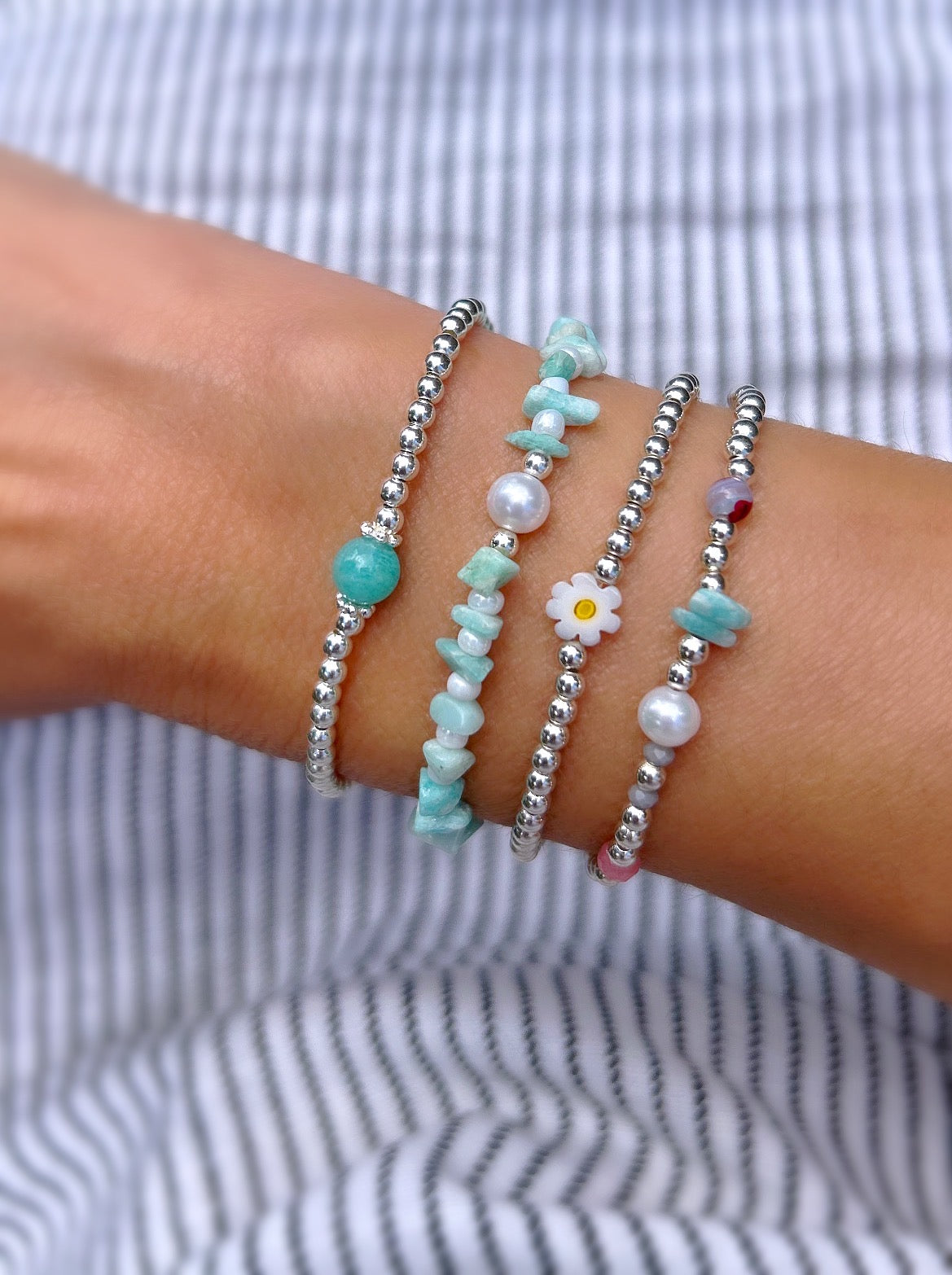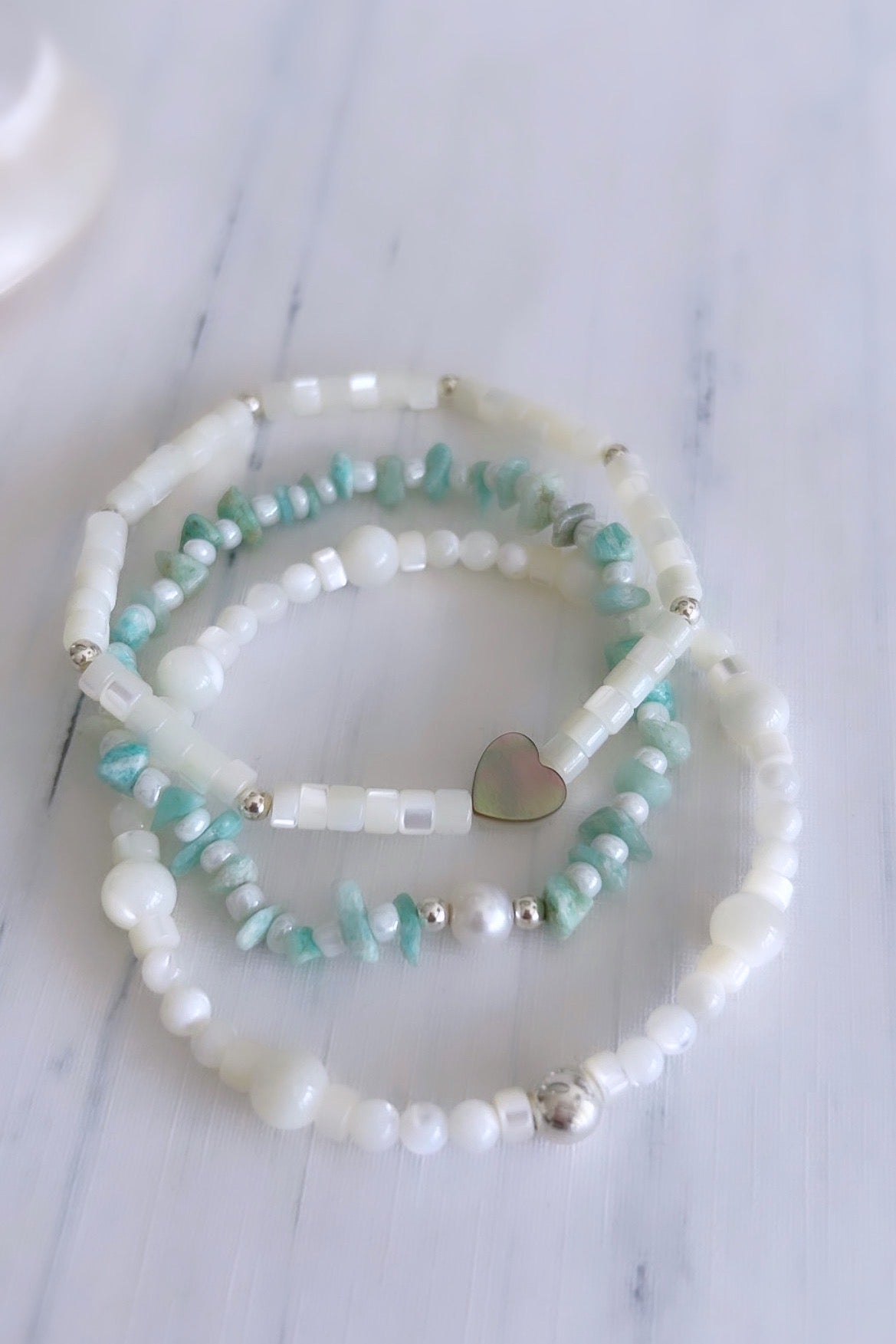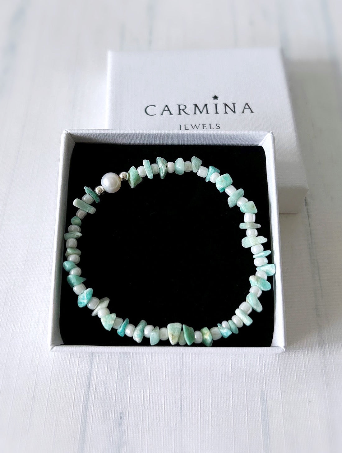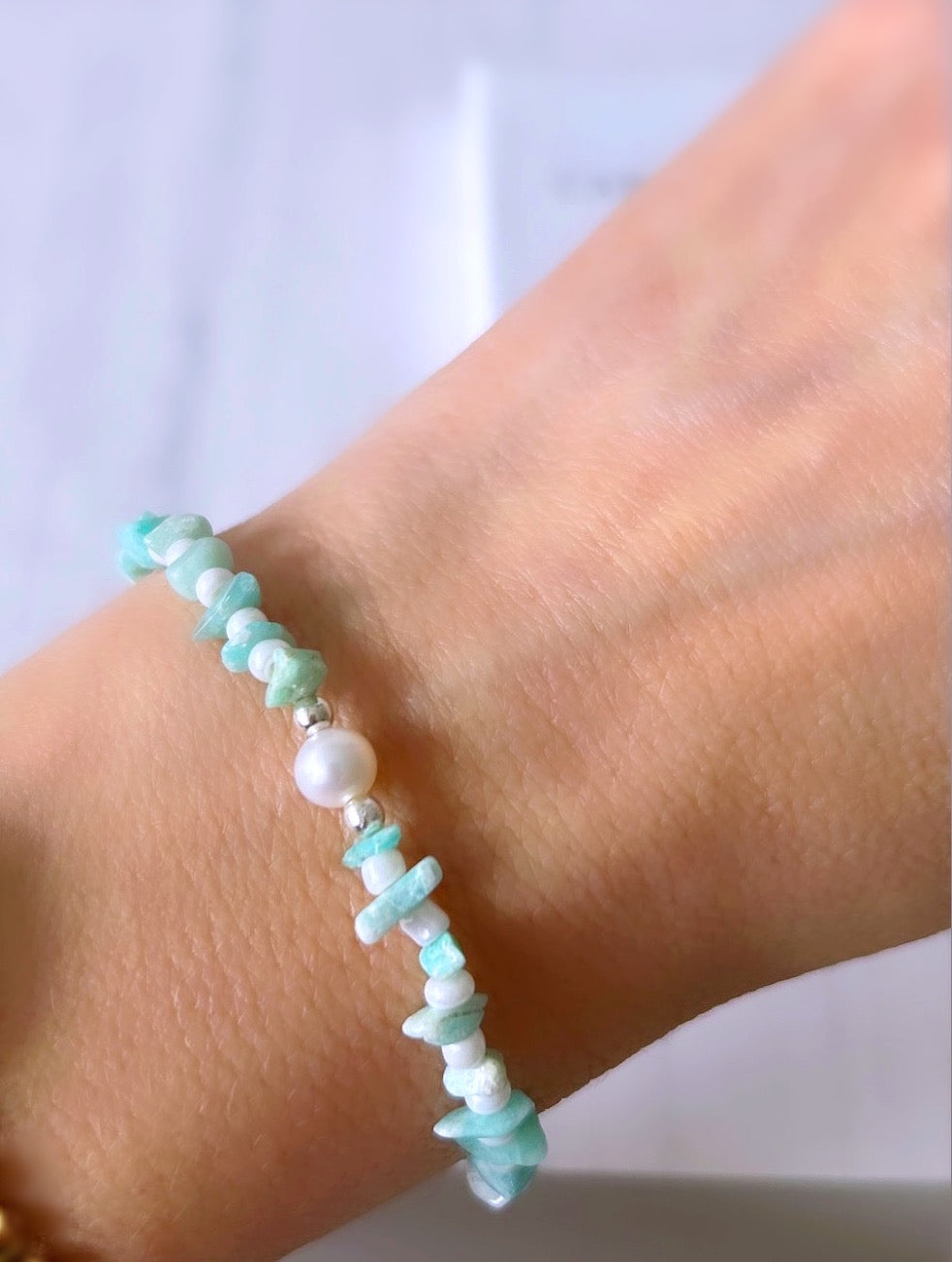 A beautiful Amazonite gemstone beaded bracelet mixed with pearlescent glass Toho beads & a single freshwater pearl ~ a perfect summer stacker!