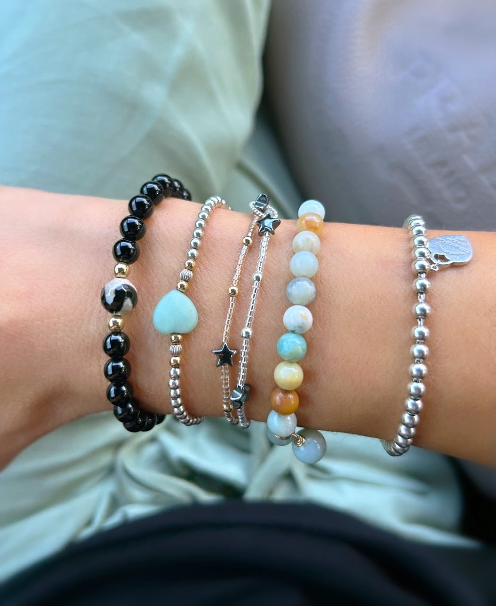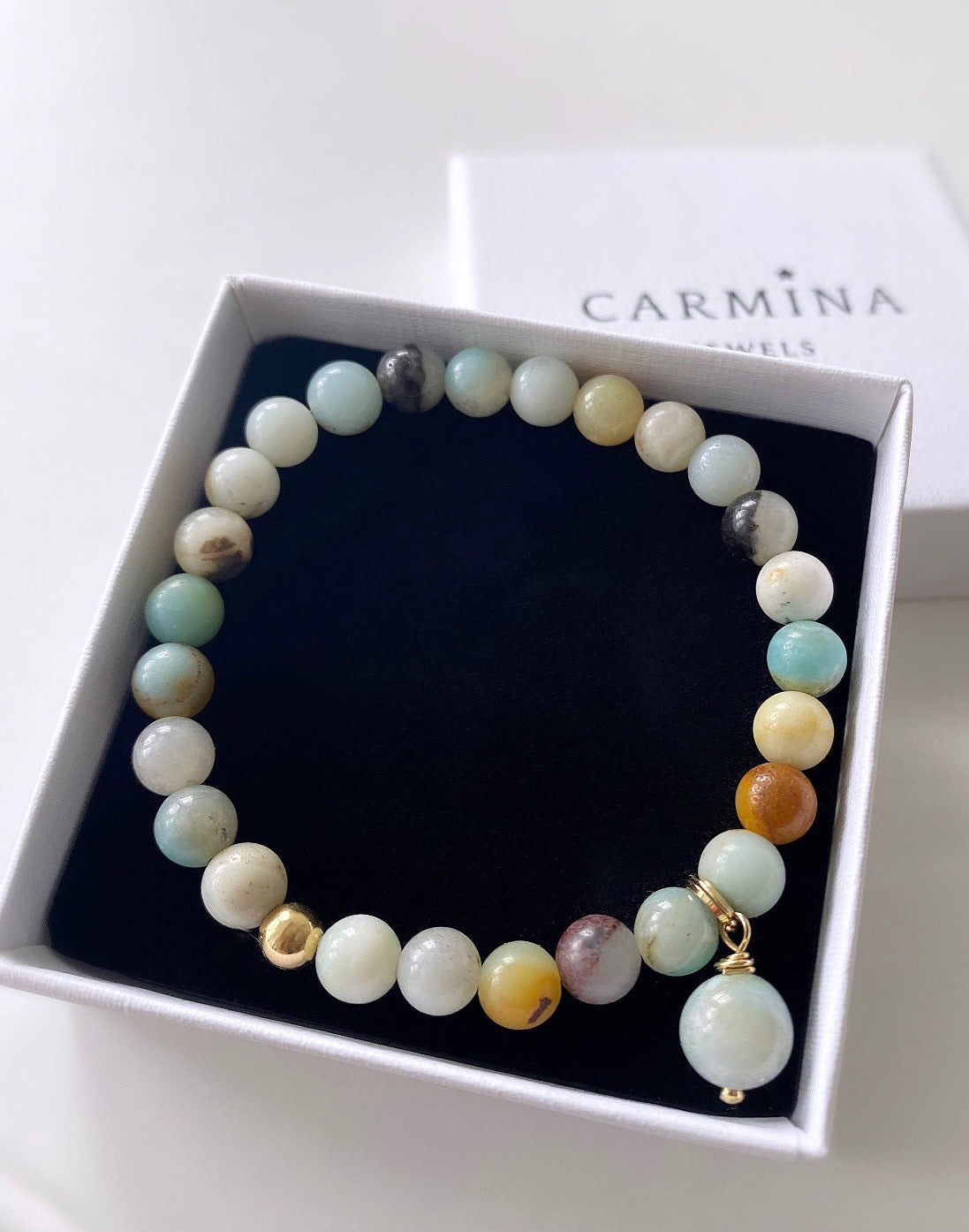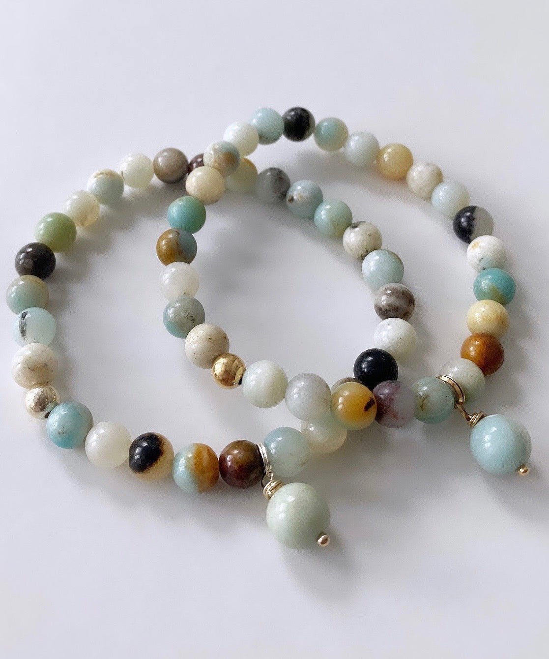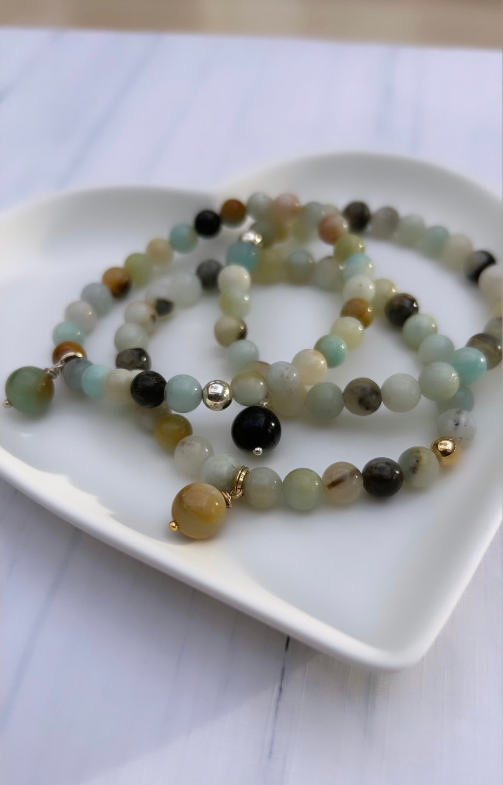 A gorgeous beaded Amazonite gemstone bracelet, threaded on a high quality stretch cord.