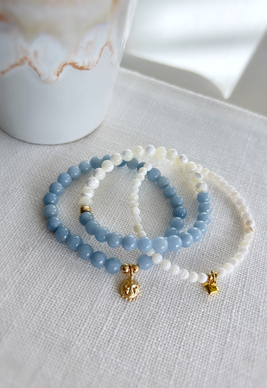 Angelite, a form of gypsum, is a soft pale blue crystal that symbolises soothing and peaceful energy.