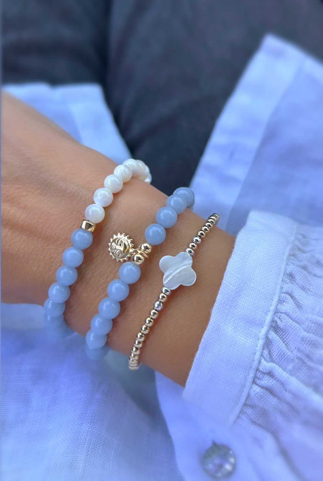 Mother of Pearl is said to bring the gentle healing power of the sea. It is known as a stress relieving stone; relaxing, soothing and calming to the emotions.