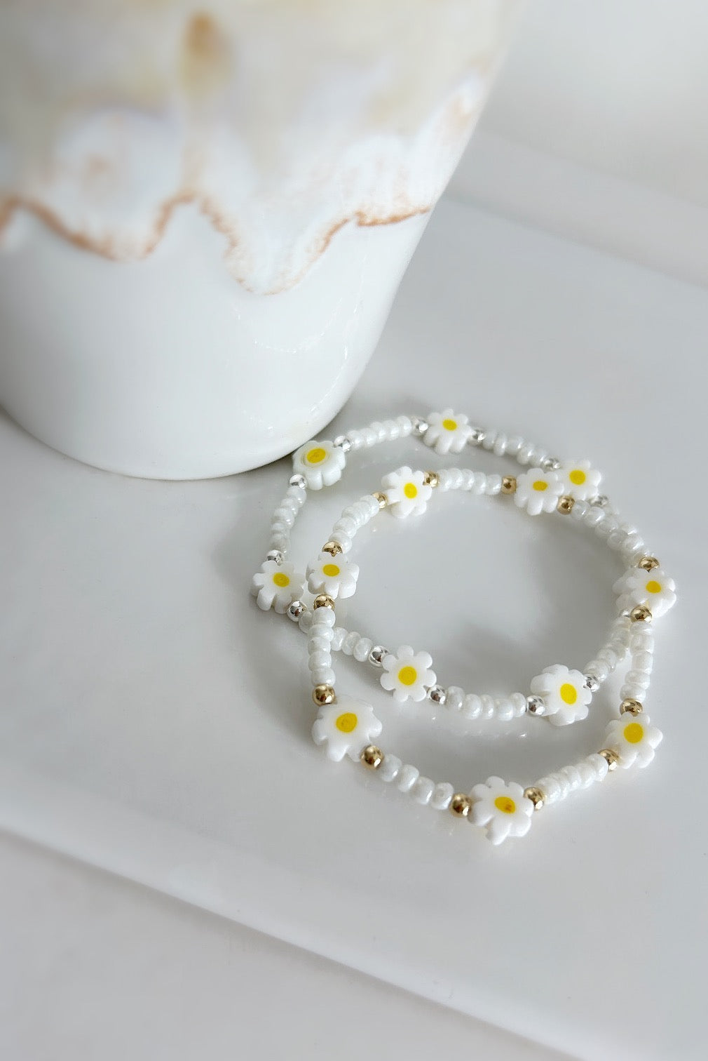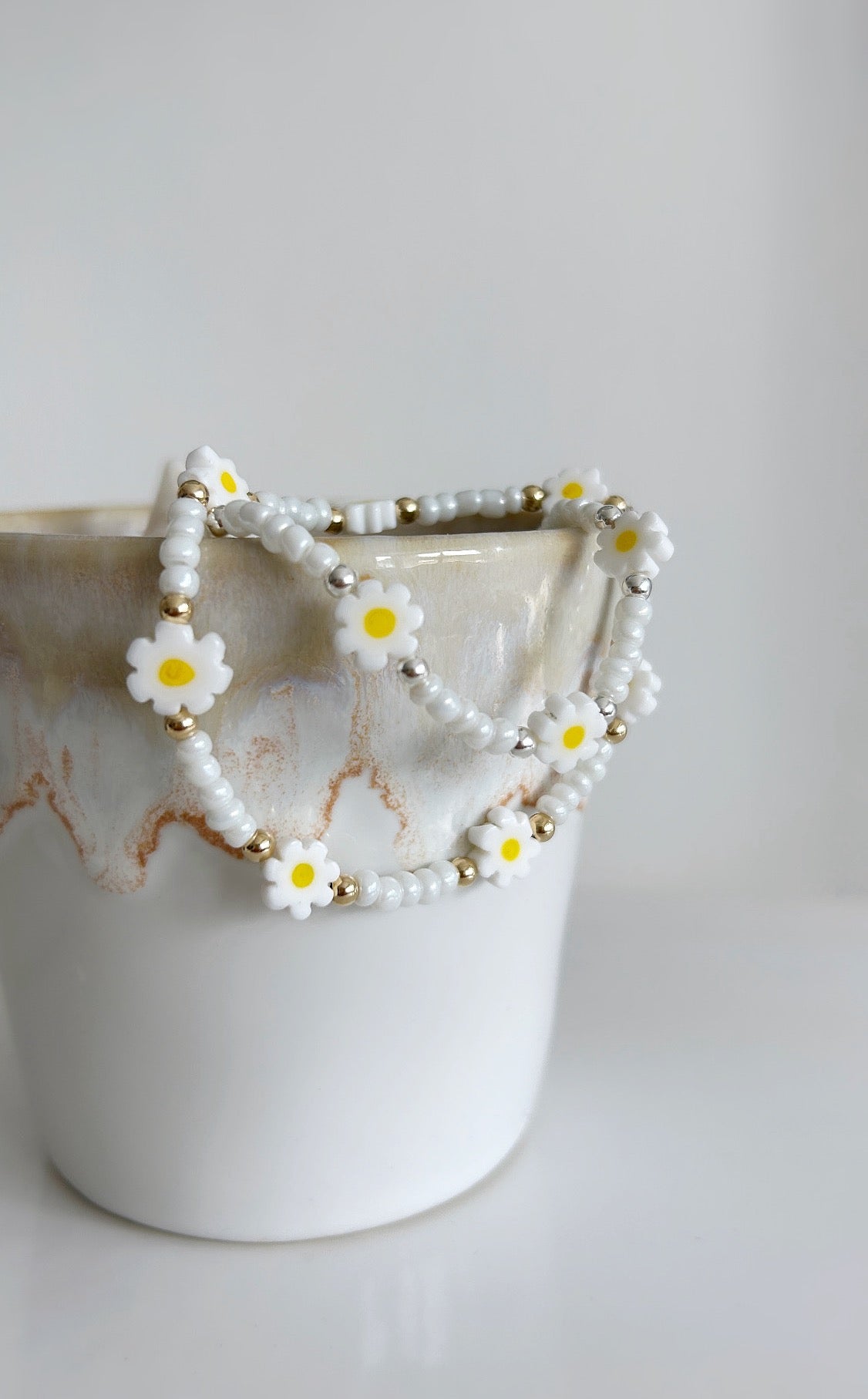Daisy glass bead bracelet
