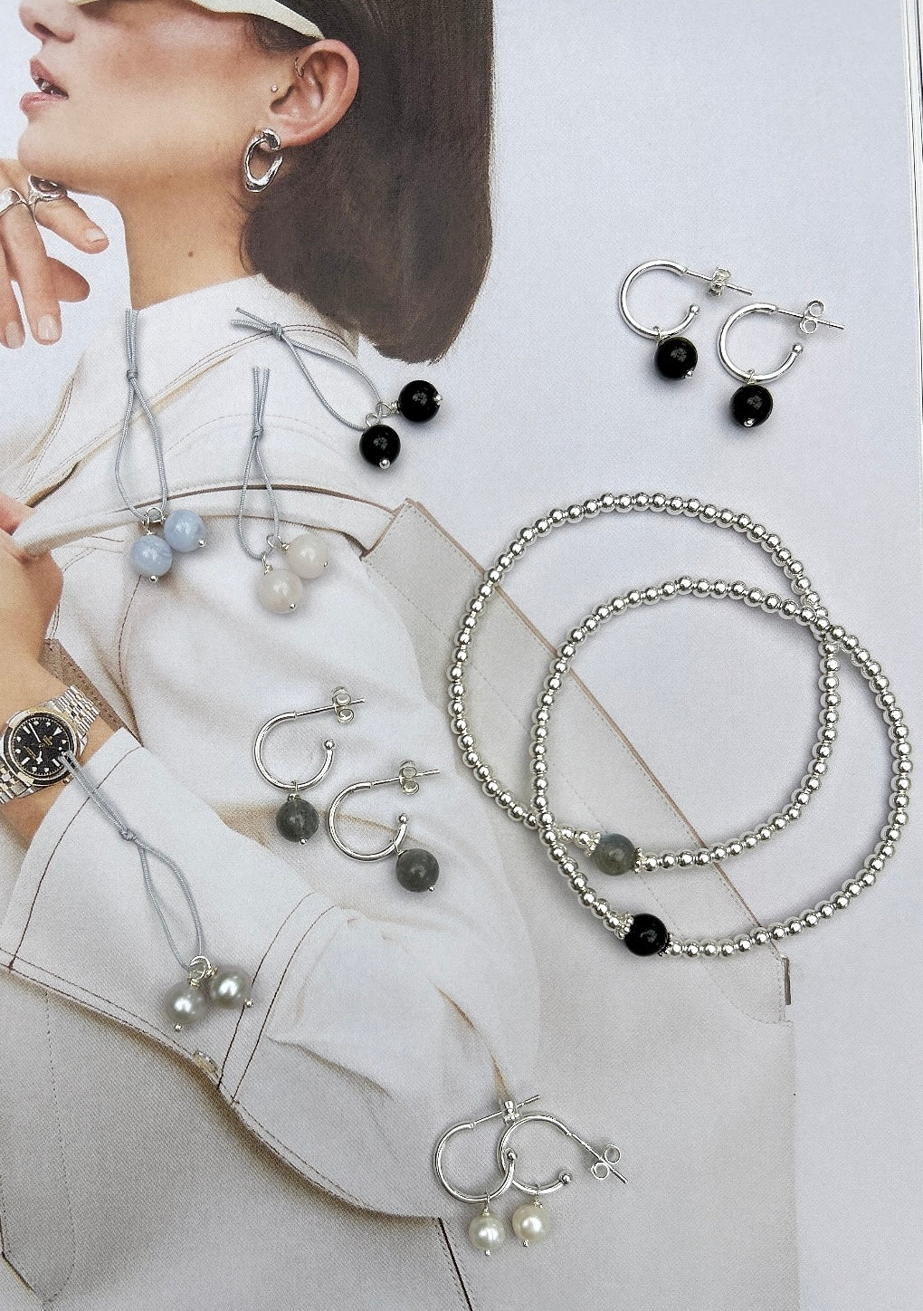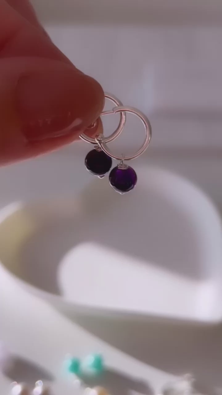 A beautiful choice of a variety of pairs of semi precious or pearl charm beads, ready to add onto your silver hoop earrings. Simply thread onto your earring hoops to update your look each day!