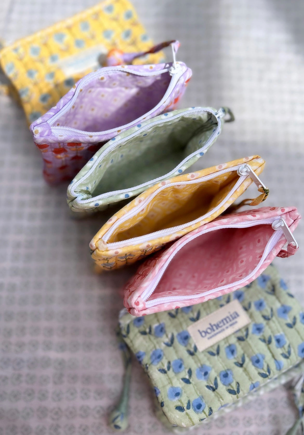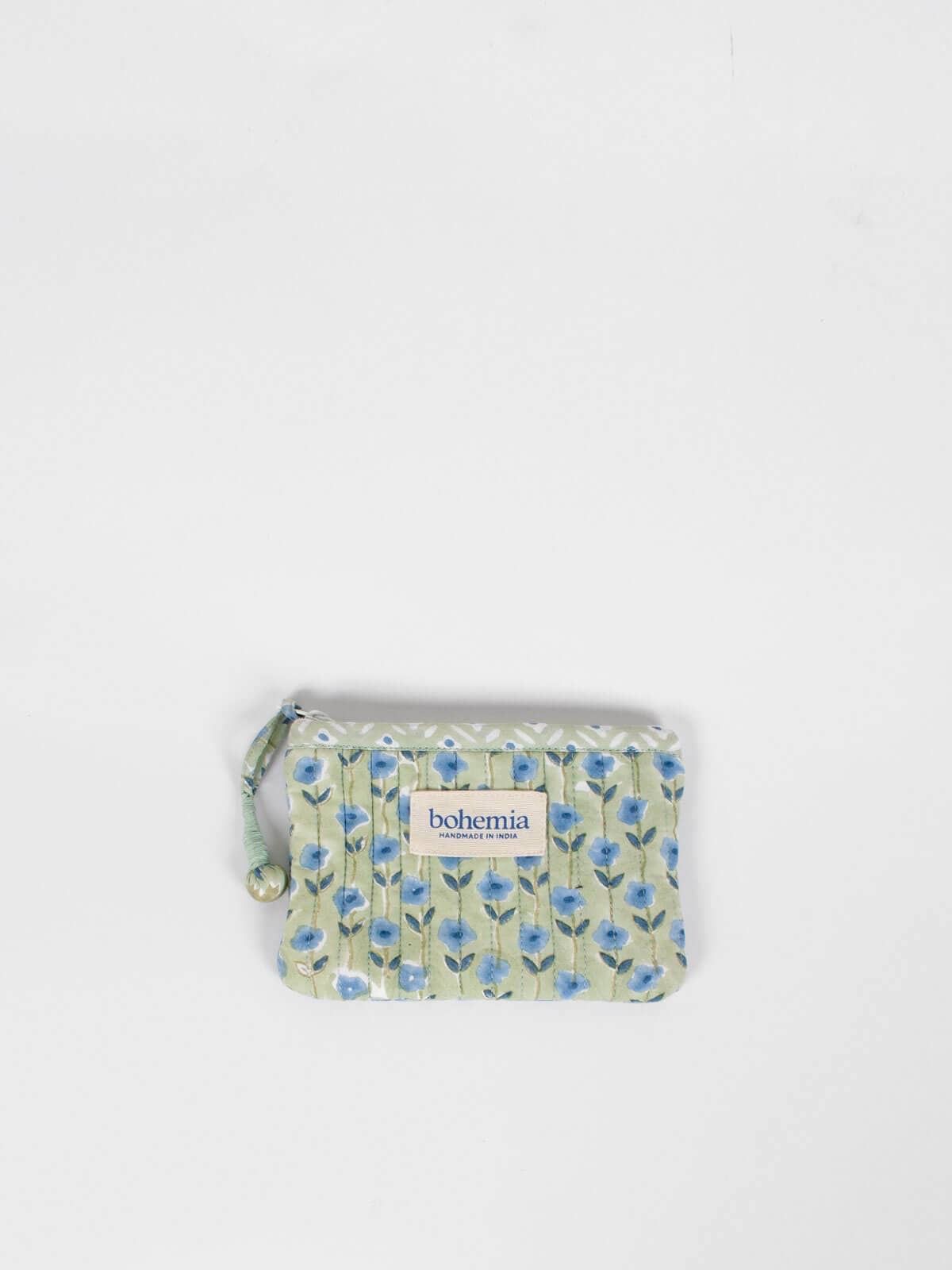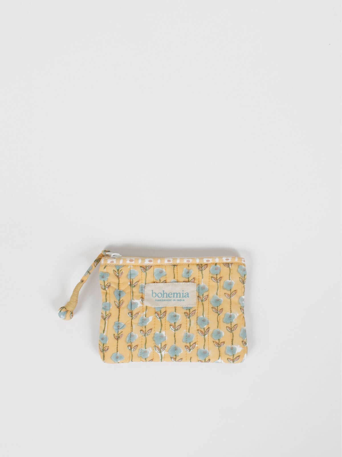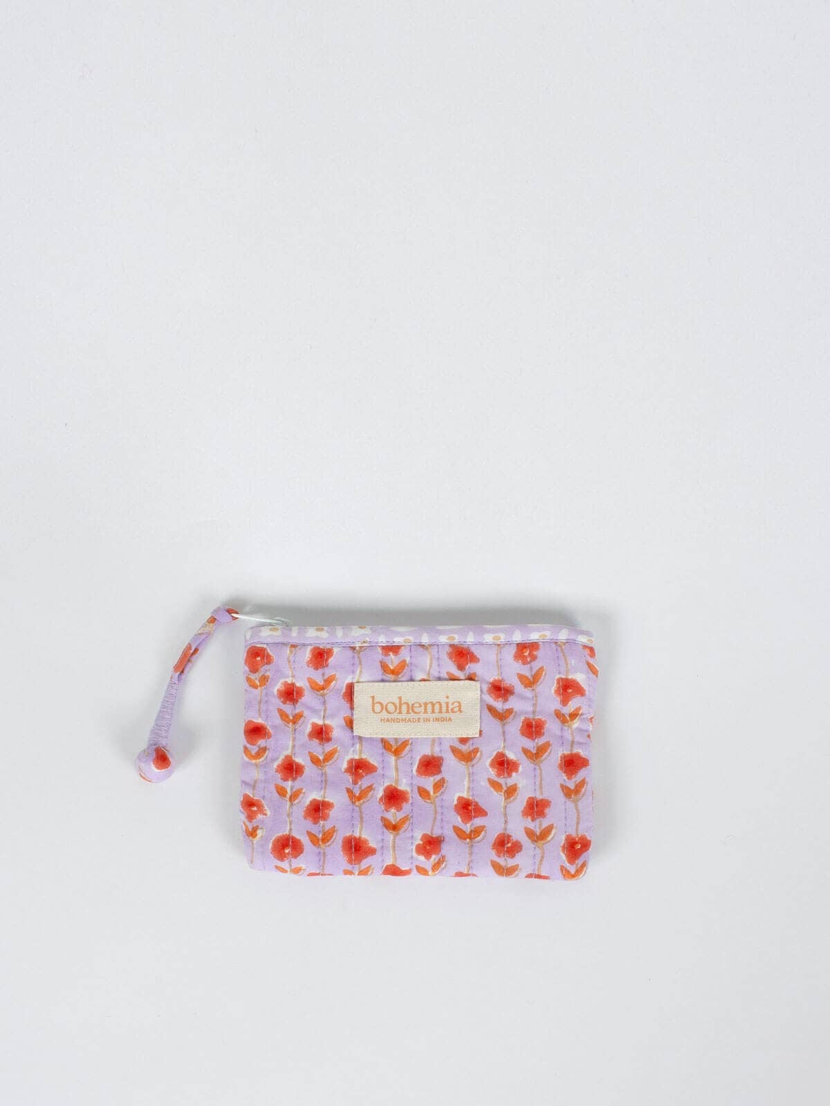 Beautiful 100% quilted cotton zip up pouches. Hand-block printed in Jaipur, and fully lined with a vintage ditsy floral print. These handy little purses are finished with a handcrafted zip pull toggle.