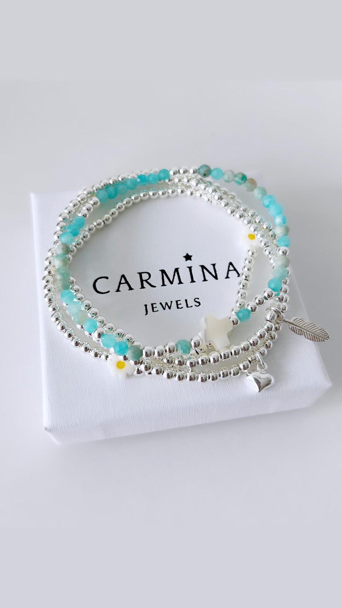 A beautiful piece of summer Jewellery, which look perfect worn stacked together.
