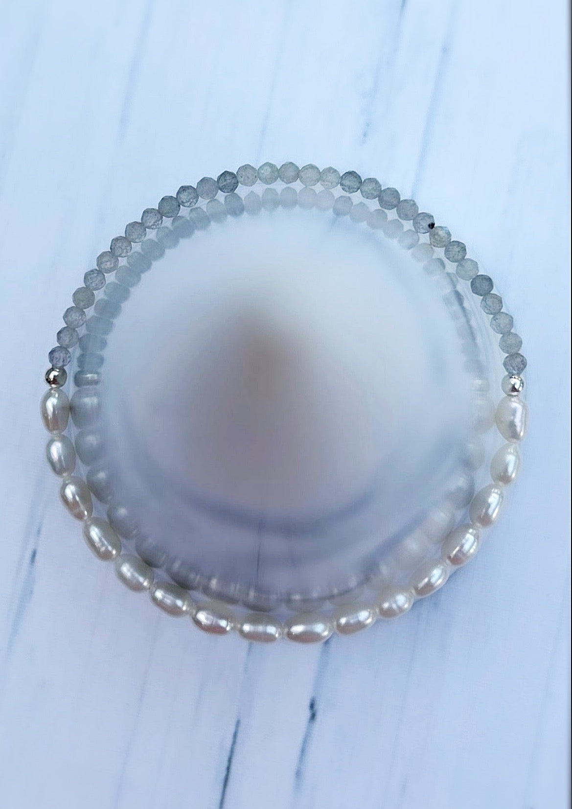 Beautiful crystal Labradorite & Freshwater rice Pearl bracelet with Sterling Silver spacer beads ~ an elegant and delicate bracelet which looks perfectly lovely worn alone, or could also be worn alongside a few Silver stacking bracelets.