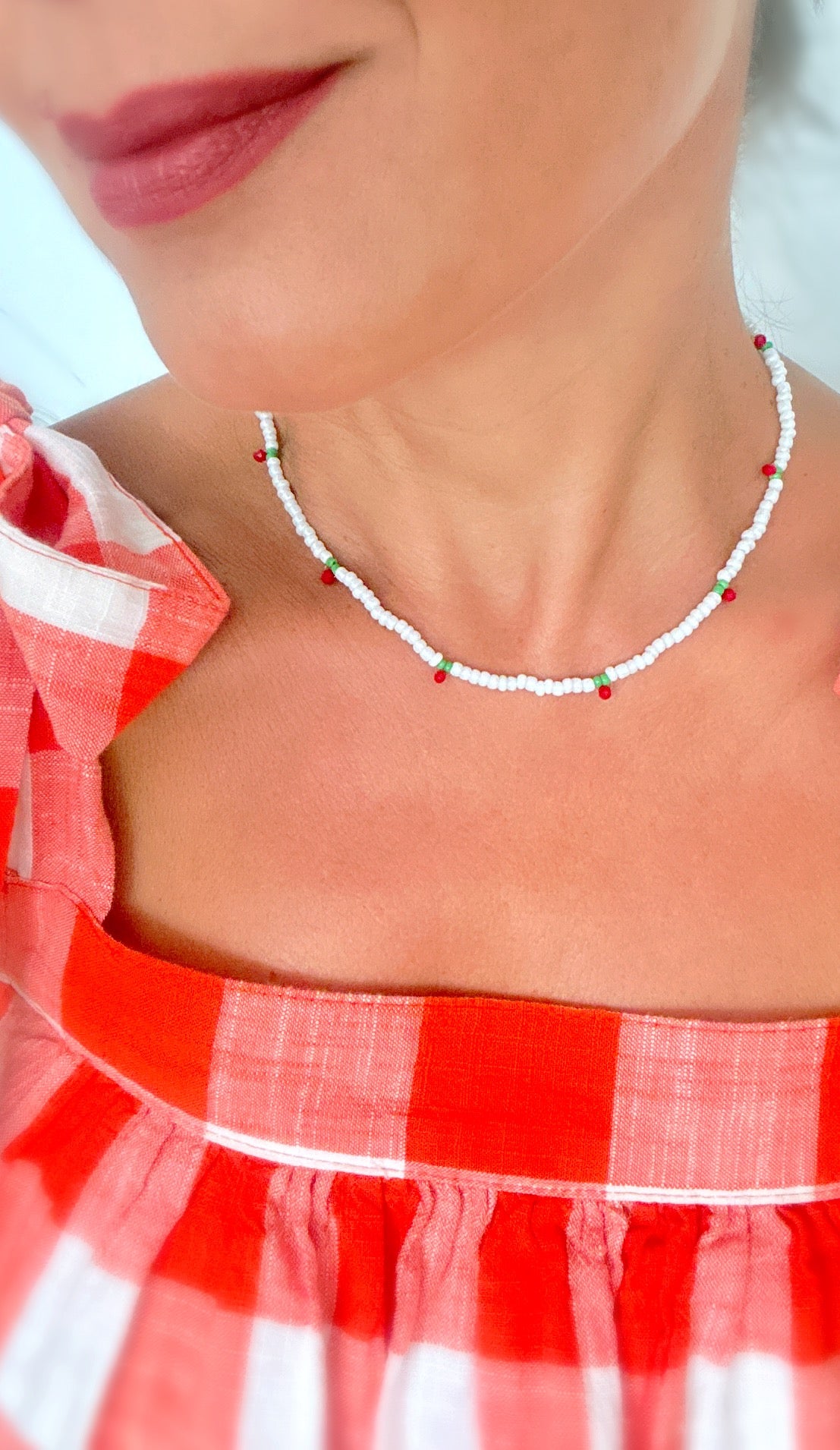 Cherries seed bead bracelet