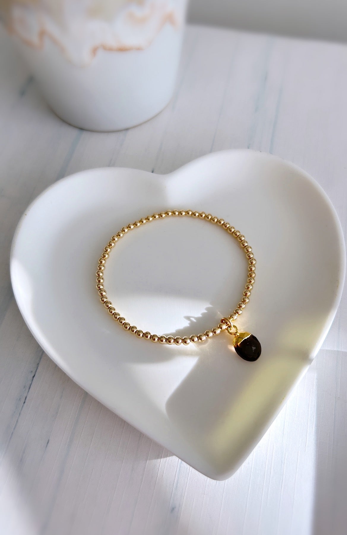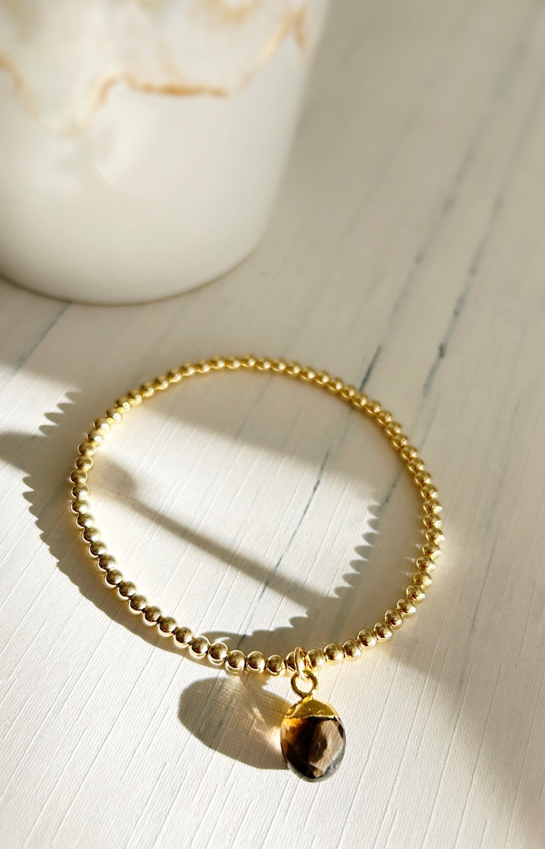 Rich chocolate coloured Smoky Quartz charm bracelet with Sterling Silver or Gold Filled spacer beads hand threaded on a strong stretch cord.