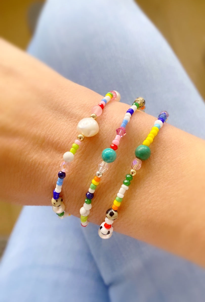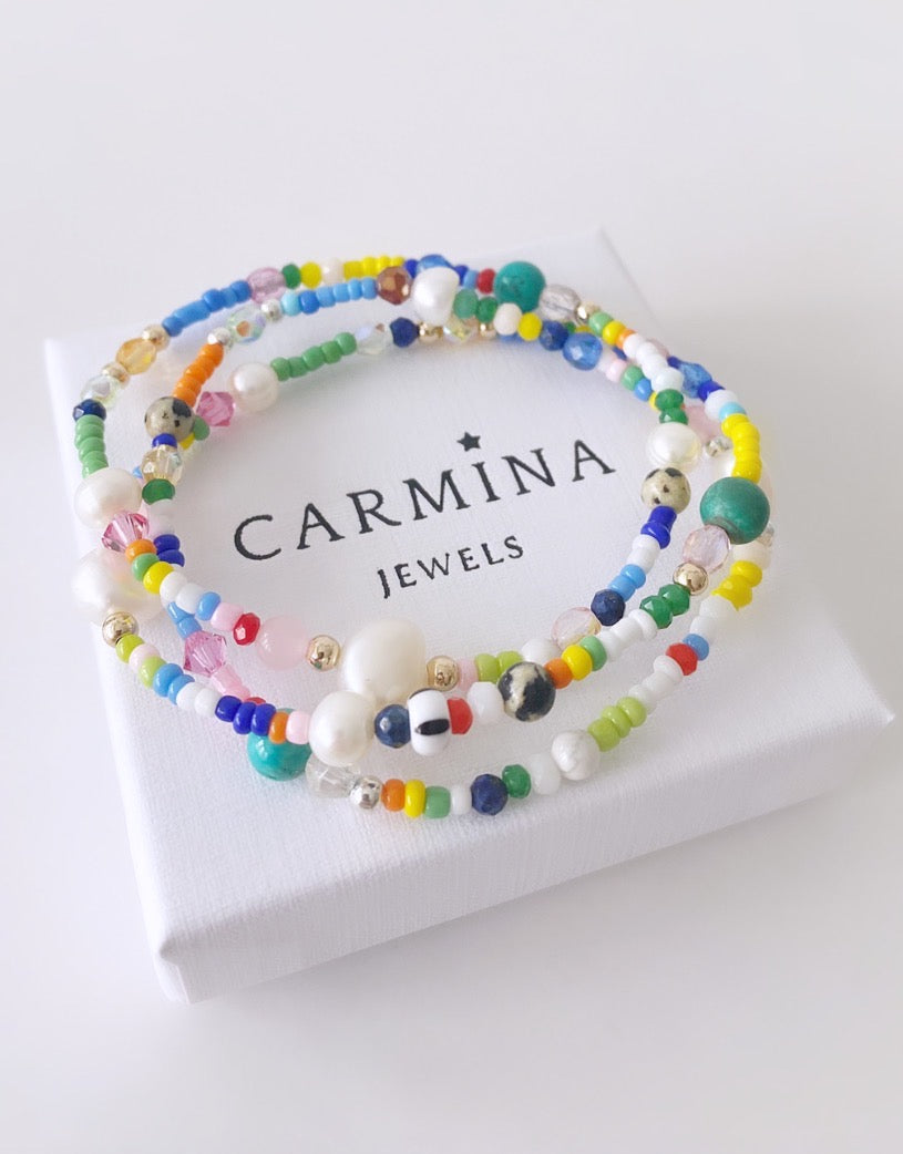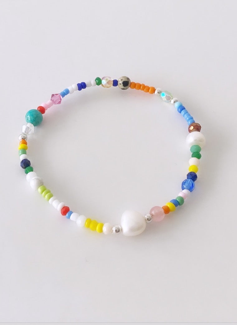 Gorgeous ‘Summer vibes’ beaded bracelet with mixed size Baroque Freshwater Pearls and a selection of Swarovski glass Crystal beads, glass seed and semi precious beads in beautiful rainbow colours - perfect for stacking!