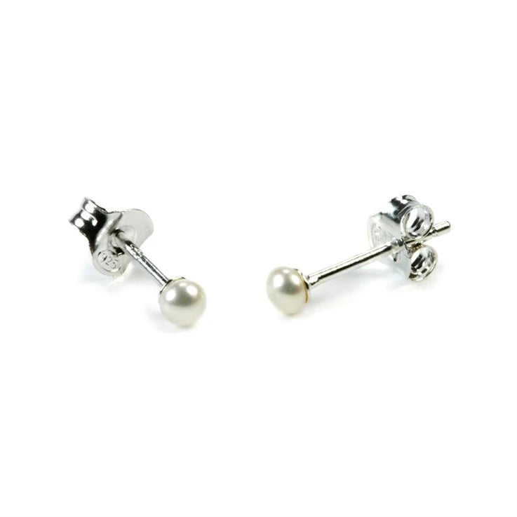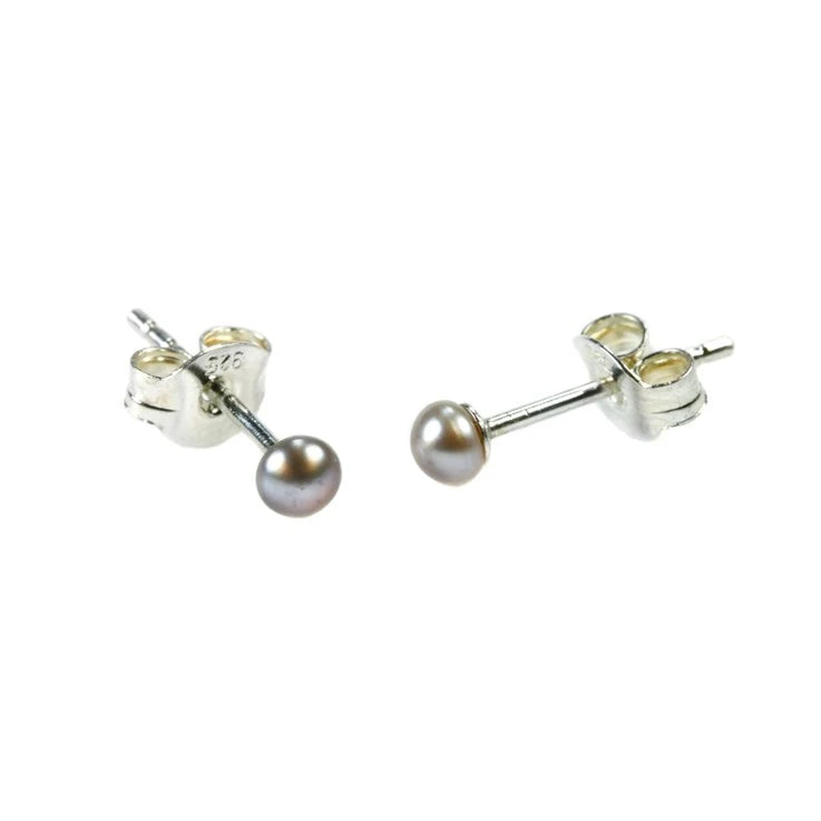 Dainty silver-grey or white tiny button Freshwater Pearl stud earrings on a sterling silver post with silver butterfly clasps. Perfect for your additional 2nd/3rd or helix piercings.
