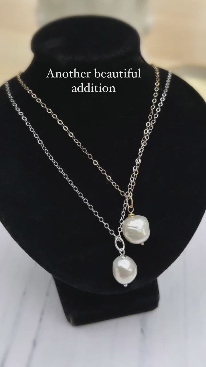 Beautiful baroque Freshwater Pearl pendant - on a delicate cable chain in either a Sterling silver or Gold Filled finish.